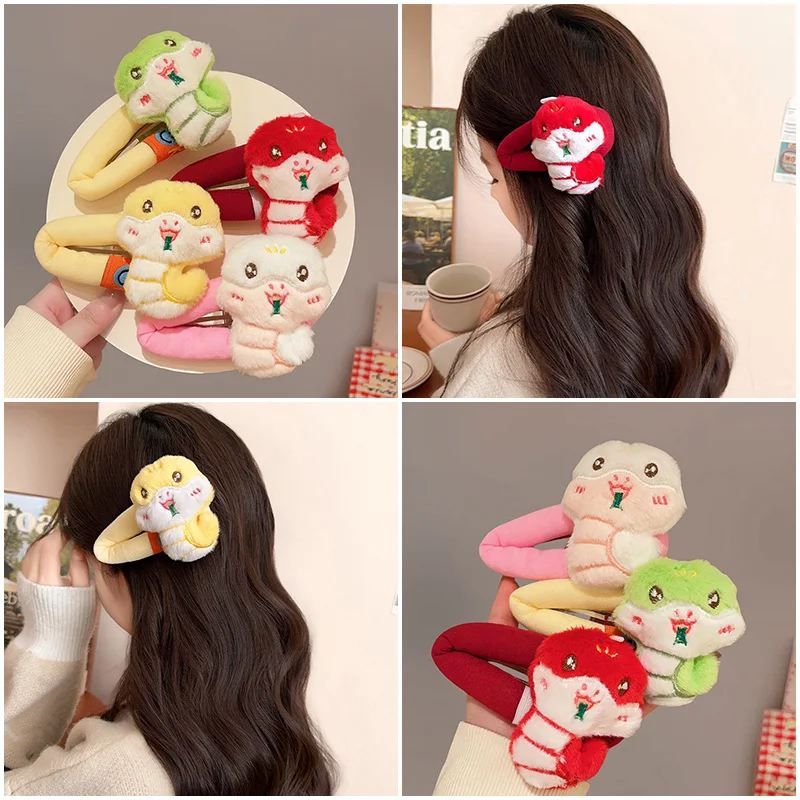 Creative Chinese New Year Hair Clips for Girls Kawaii Snkae Shape Party Headbands Hair Clips Hairpin Antlerfestival Headdresses