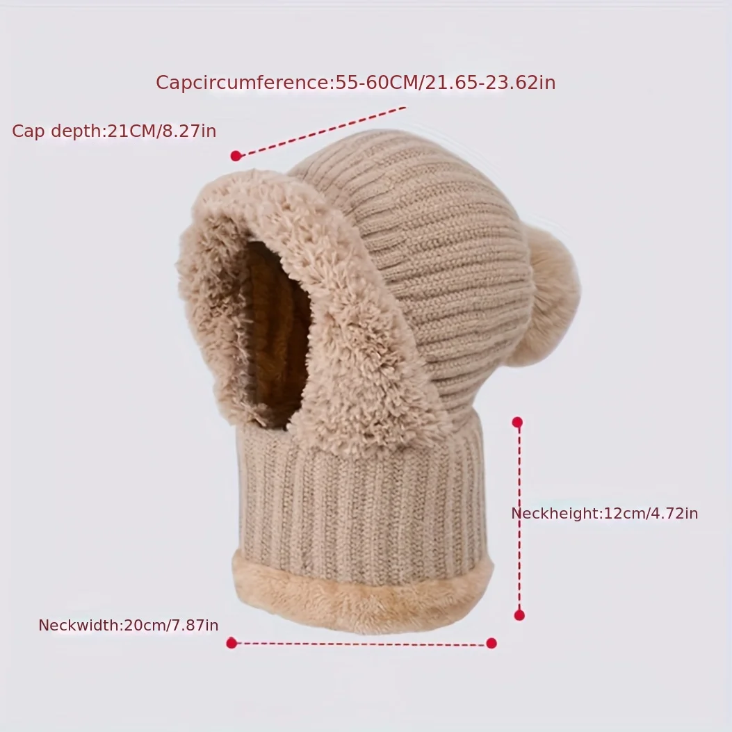 Winter Women Knit Hat Mask 3-in-1Thermal Balaclava Beanie Hat Set Women Cashmere Neck Warm Windproof Cycling Hat