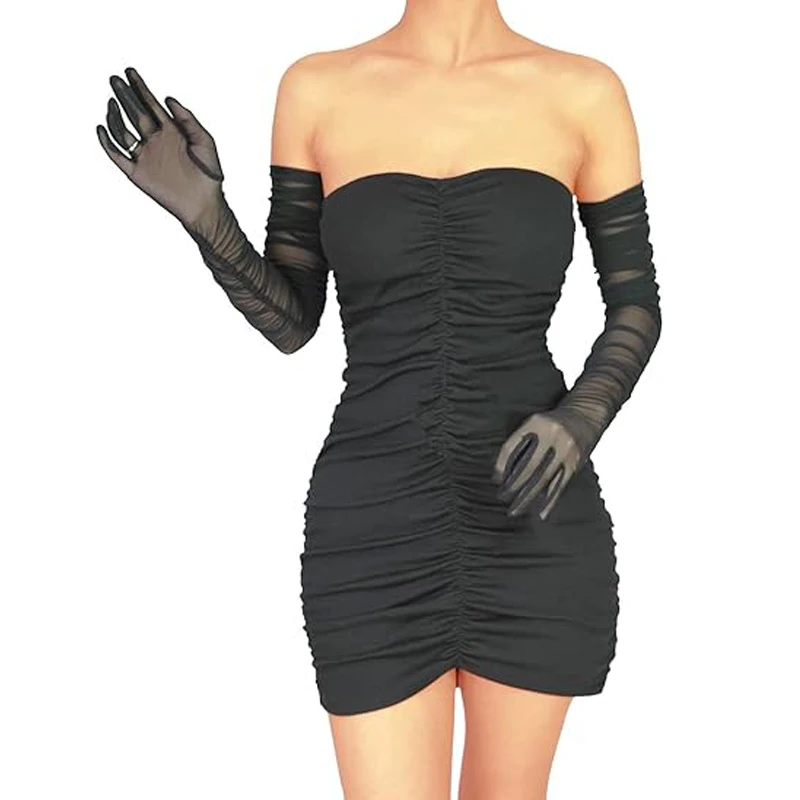 Women'S Sexy Transparent Gloves Mesh Tulle Extra Long Gloves Opera Halloween Costume Party Dance Gloves